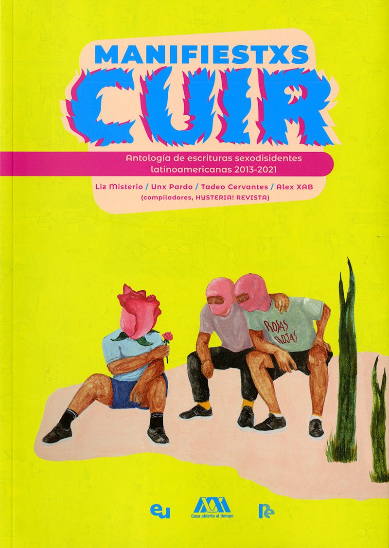 Incluso por suerte me encontré con: Manifiestxs Cuir. Antología de escrituras sexodisidentes latinoamericanas 2013-2021”, compilado por Liz Misterio, Unx Pardo, Tadeo Cervantes y Alex XAB.